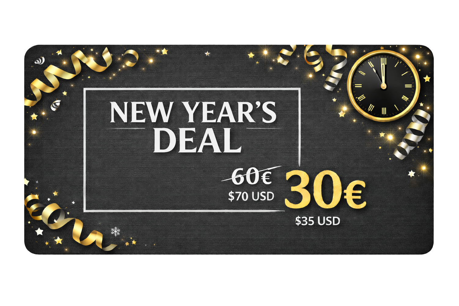 50% OFF — 30€ instead of 60€.